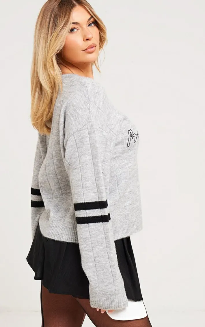 Get ready to earn some serious style points in this grey wide rib knit sleeve detail oversized sweater. Brought to you in as grey hue wide rib knit material with sleeve detail and an oversized fit, what more could you want? Style this oversized sweater with a mini skirt and loafers for a simple yet chic outfit of the day.