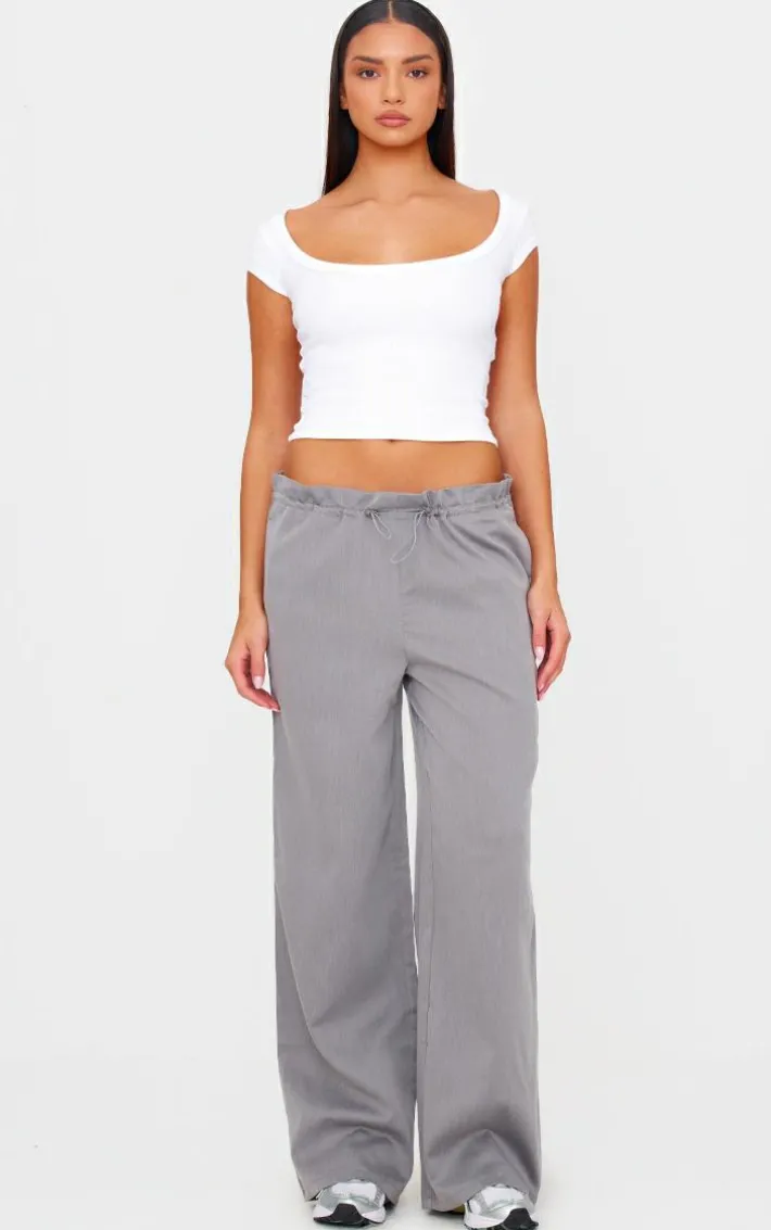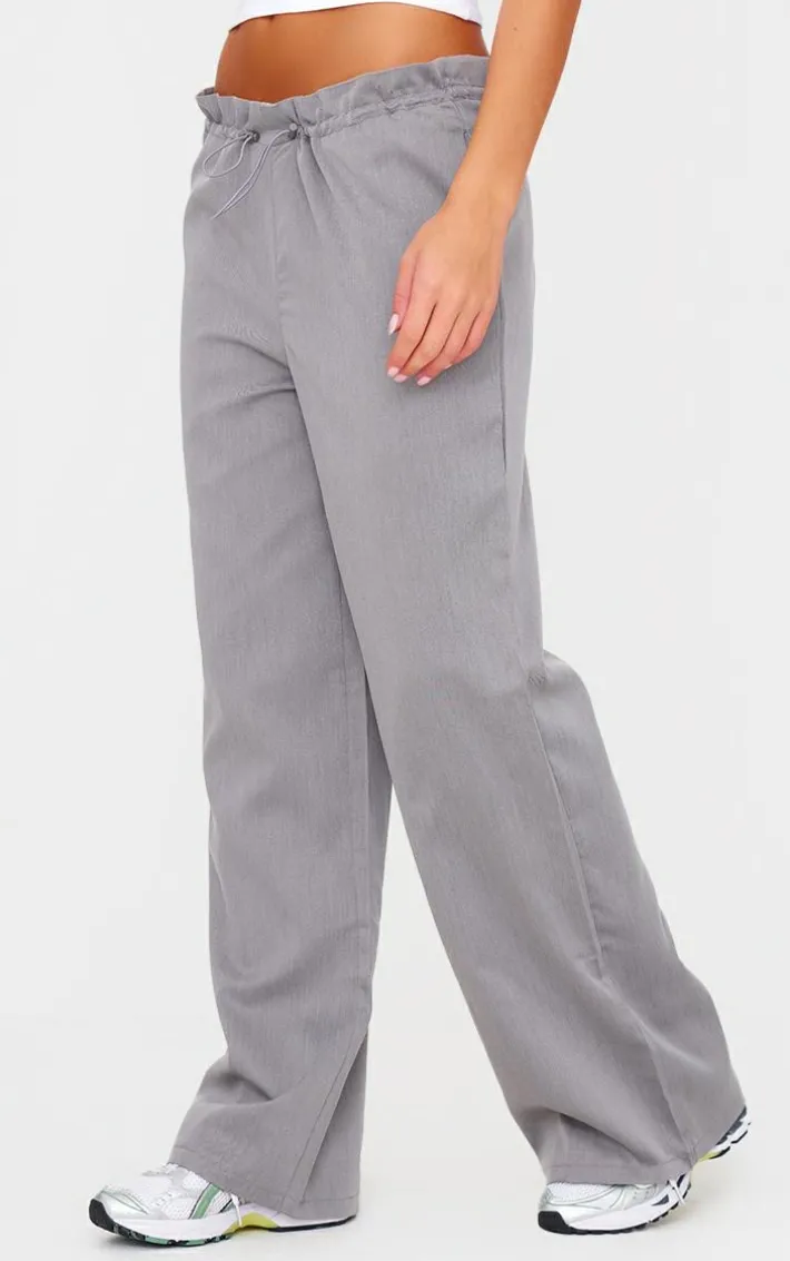 These grey woven drawstring waistband straight leg pants are calling your name as your new go-to. Brought to you in a versatile grey shade, with a luxe woven material, flattering drawstring waistband and straight leg fit, what’s not to love? Team with a white crop top and sneakers for that off-duty finish everyone wants.