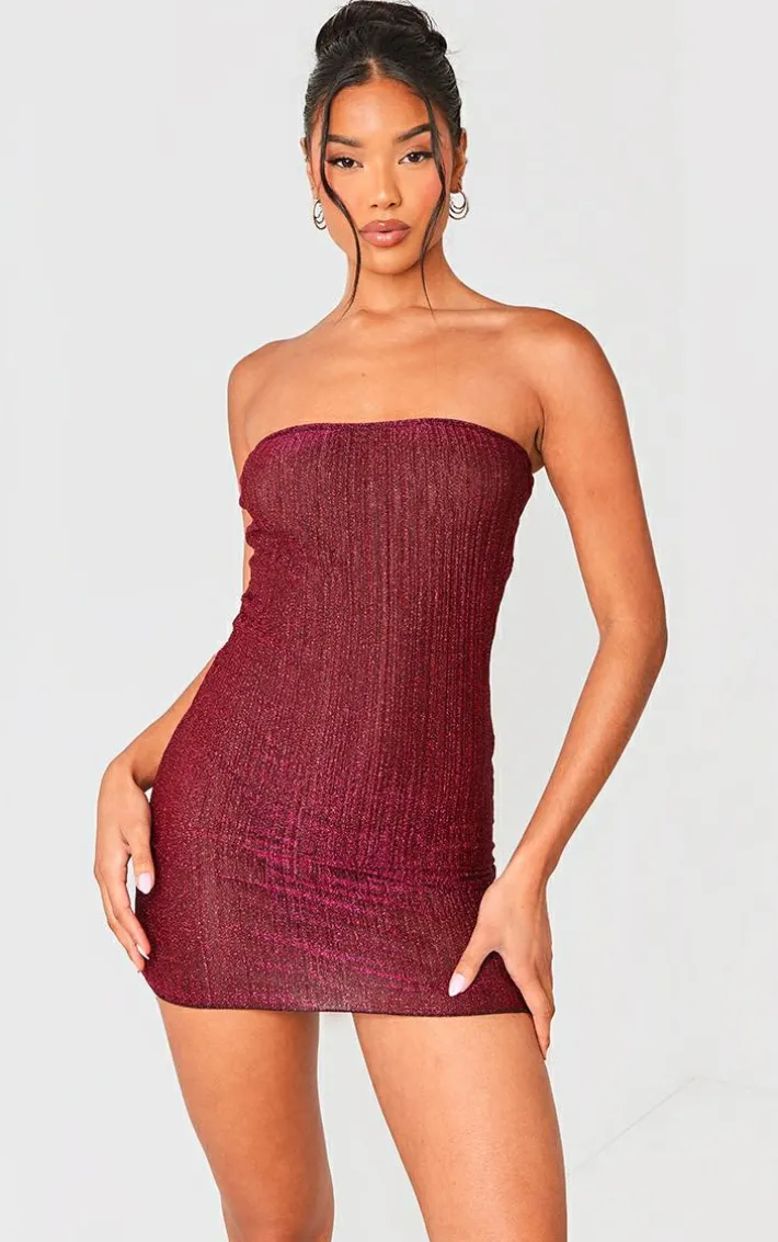 We’re all about the glam vibes this season and this hot pink glitter plisse bandeau lettuce hem bodycon dress, you’re sure to be earning all the compliments. With a hot pink glitter plisse material, a lettuce hem design and a bandeau style, this bodycon dress just went straight to the top of your hit list. Style it with a faux fur coat, wrap around heels and your fave accessories for a look no one will forget.