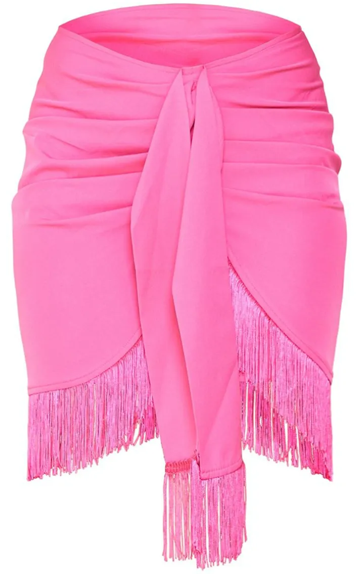 Make them stop and stare with this hot pink ombre print woven tassel wrap skirt. Brought to you in a hot pink material with an ombre woven design, its a yes from us. With a tassel detail, this wrap skirt is all you need to elevate your look even further. Team with a corset top and some clear heels to make a statement.