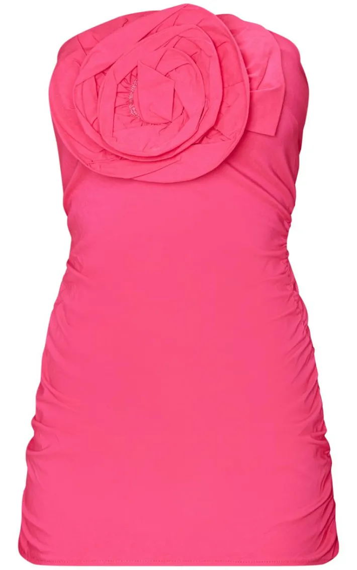 Add a pop of pink to your new season wardrobe with this hot pink woven flower applique bandeau bodycon dress. Brought to you in a hot pink woven material with a flower applique detail and bandeau neckline, this bodycon dress is a must-have. Style with clear heels and gold accessories to have all eyes on you.