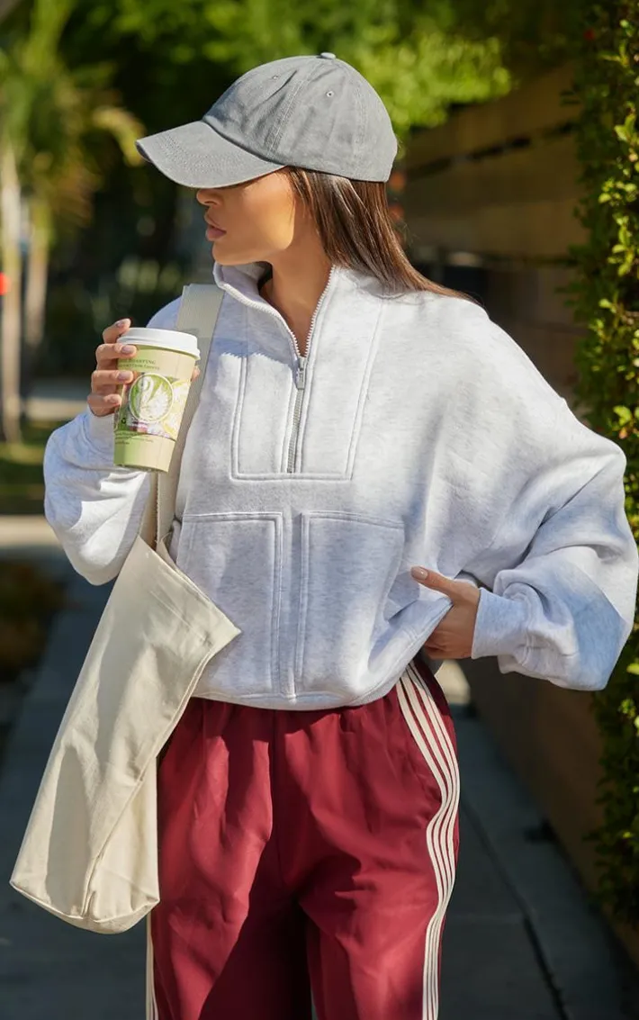 Your off-duty looks have never looked better with this ice grey half zip double pocket seam detail sweatshirt. Brought to you in a versatile ice grey shade, with a half zip design, double pocket detail and seam feature, how can you say no? Style with some track Pants, a tote bag and cap for the ultimate chilled finish.