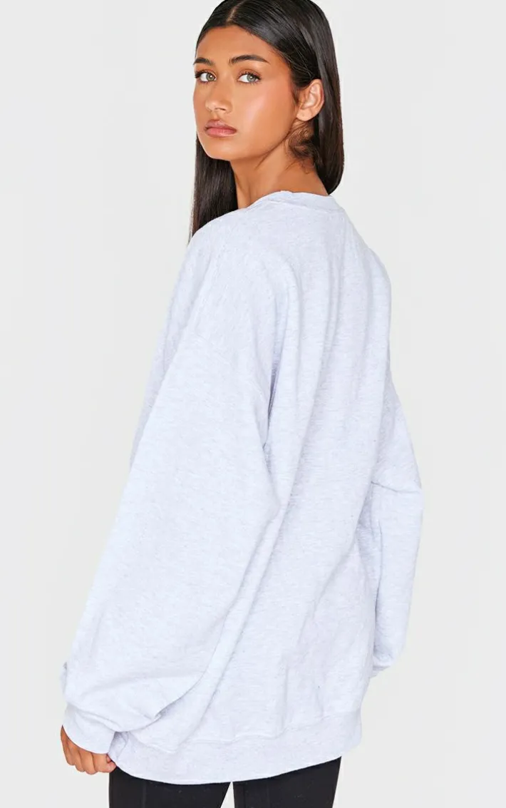 Take your off duty look to new heights with this ice grey Maine print oversized sweatshirt. Brought to you in an ice grey hue sweat material with a Maine print design and oversized fit, this sweatshirt is all the new you need. Style with leggings, fresh kicks and simple accessories for a look like no other.