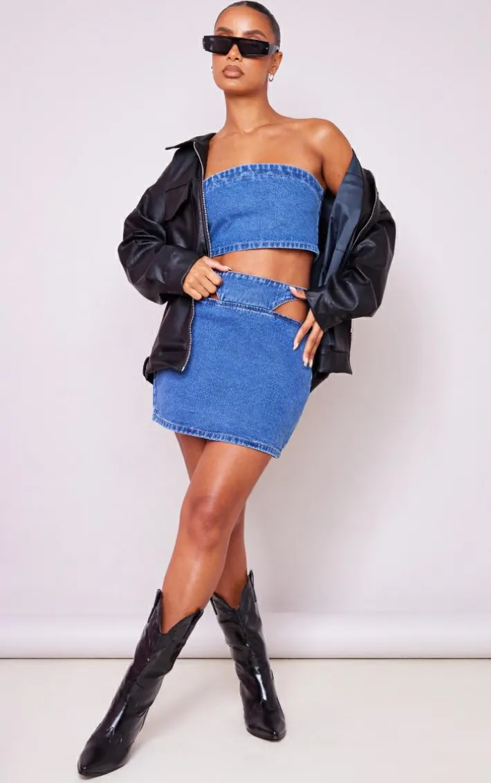 Get ready to nail major trends this season with this indigo blue wash cut out waistband denim mini skirt, you’re sure to fall in love. It features an indigo blue wash denim material with a cut out waistband design and a mini length, how could you say no? Team this unreal mini skirt with the matching top, cowboy boots and a faux leather jacket for a fool proof finish.