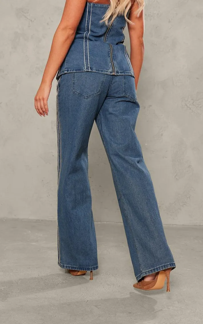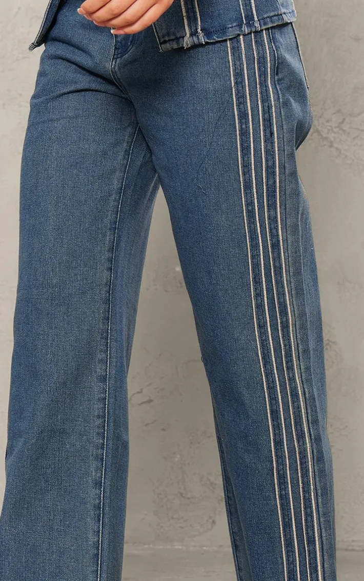 Hit refresh on your new season wardrobe with these indigo raw stripe detail straight leg jeans, you won’t be able to resist. These jeans feature an indigo denim material with a raw stripe design and a straight leg fit, how can you resist? Pair these indigo jeans with the matching top, heels and minimal accessories for a look everyone will be asking about.