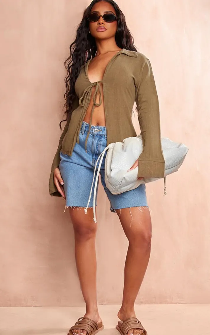 Say hello to your new season staple with this ink blue tie front crinkle shirt. Brought to you in an ink blue crinkle material with a tie front, how could you say no? Style effortlessly with denim shorts, sandals and accessories for a look that will turn heads for all the right reasons.