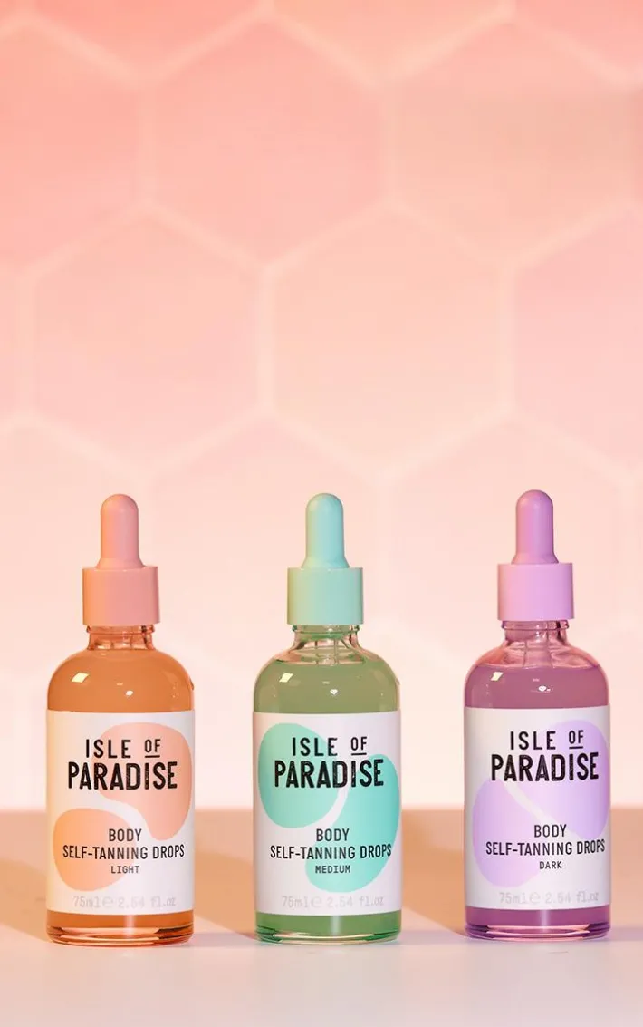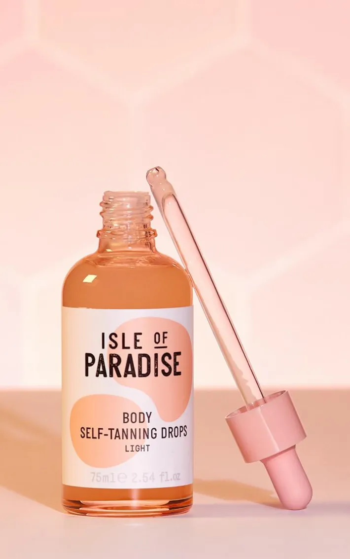 Suitable for all body and skin types, Isle of Paradise Body Drops are infused with supercharged skincare ingredients that deliver a natural tan when mixed with your body moisturizer. Developed to enhance your body care routine, the Drops help smooth the appearance of the skin, hide imperfections, and give an even, glowing finish. Develops within 4-6hrs and leaves you glowing for up to 5 days