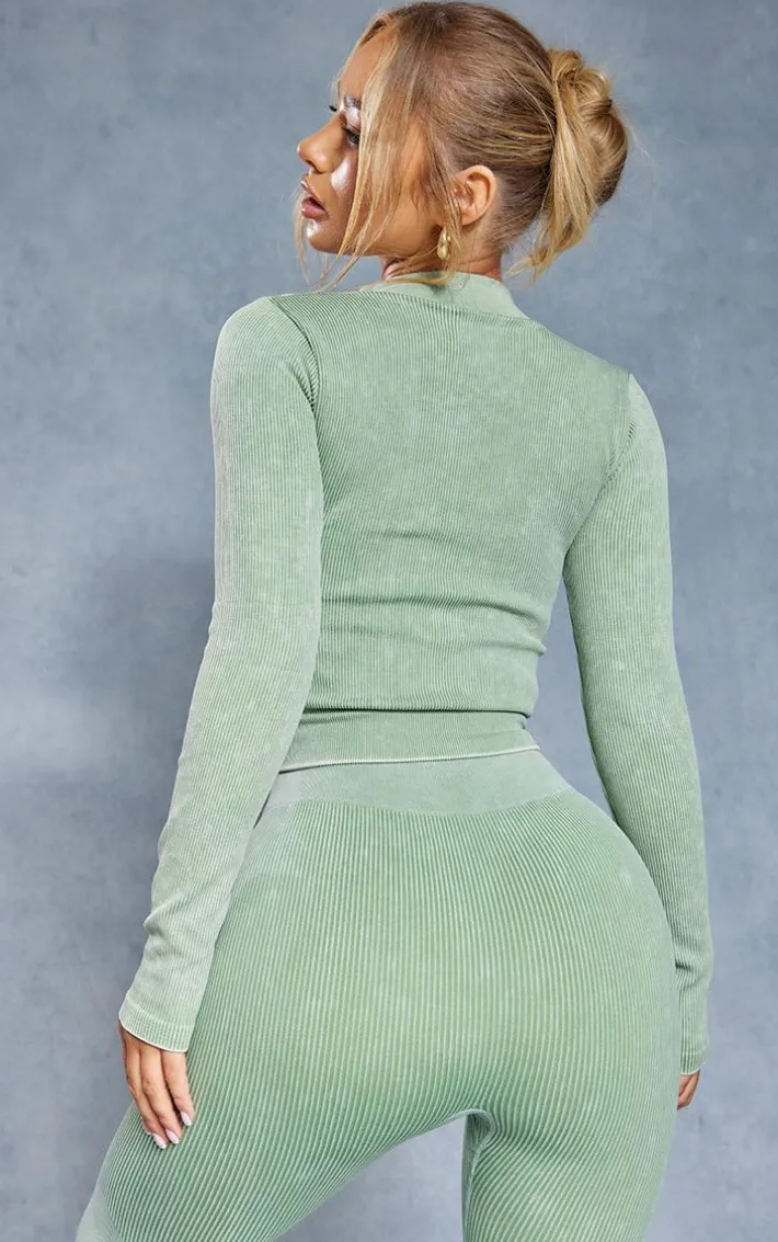Add some dreamy hues to your workout wardrobe with this jacket. Featuring an acid wash khaki ribbed material with a cropped fit and a zip-up design, we are obsessed. Team this with matching leggings and fresh kicks for the perfect gym-ready fit.