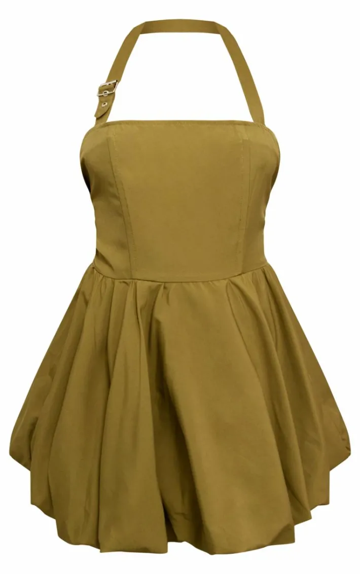 This khaki buckle detail halterneck puffball mini dress is calling your name. Brought to you in a khaki hue material with a buckle detail, halterneck design and puffball design, this mini dress is a must-have. Style with brown boots and your fave mini bag for a chic finish we can’t get enough of.