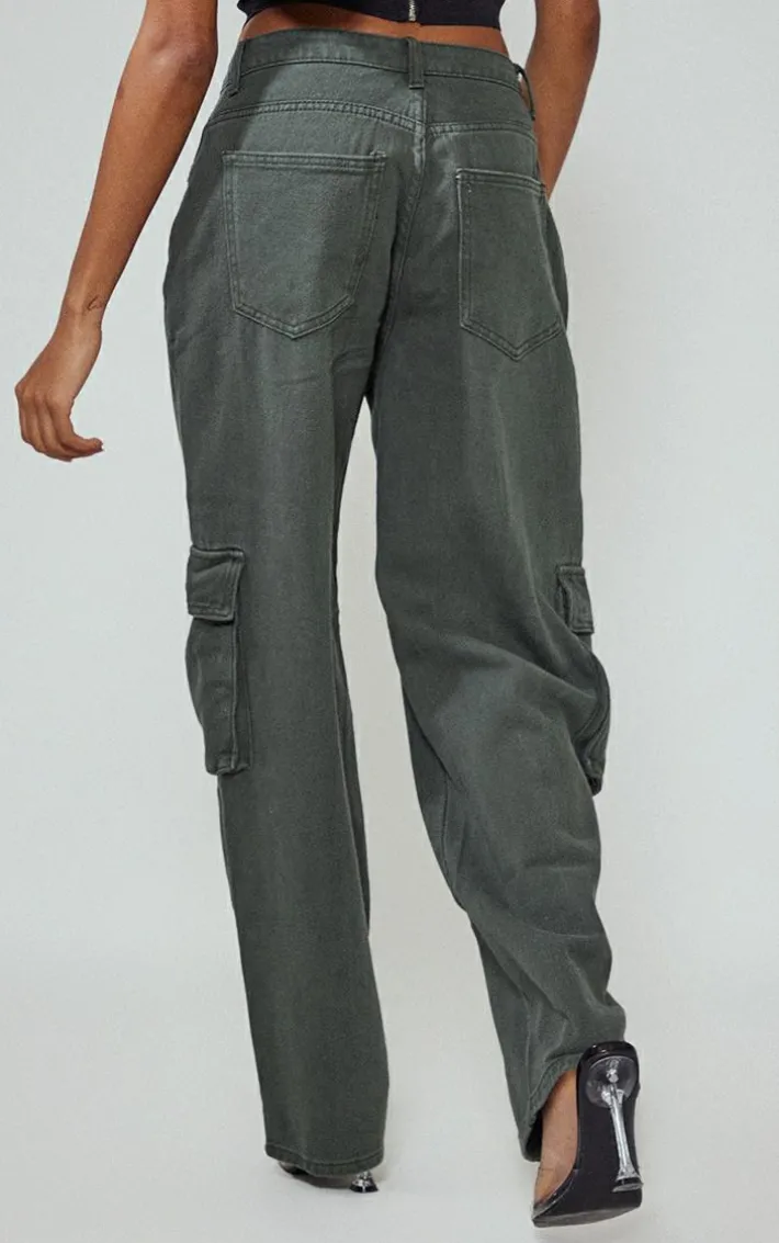 Amp up your outfit of the day with these unreal khaki cargo pocket detail baggy boyfriend jeans, say hello to your new season wardrobe staple piece. The jeans are made with a khaki hue denim material with pockets and a baggy, boyfriend fit. Just add a corset top, clear heels and your fave accessories for a fool proof finish.