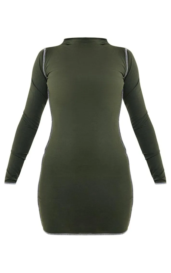 Take the stress out of everyday styling with this khaki cotton contrast seam long sleeve bodycon dress. Brought to you in a khaki hue cotton material with a contrasting seam design, long sleeves and a figure-hugging bodycon fit, what more could you need? Keep it casual and team this khaki dress with sneakers and statement accessories for an off-duty look we’re loving.