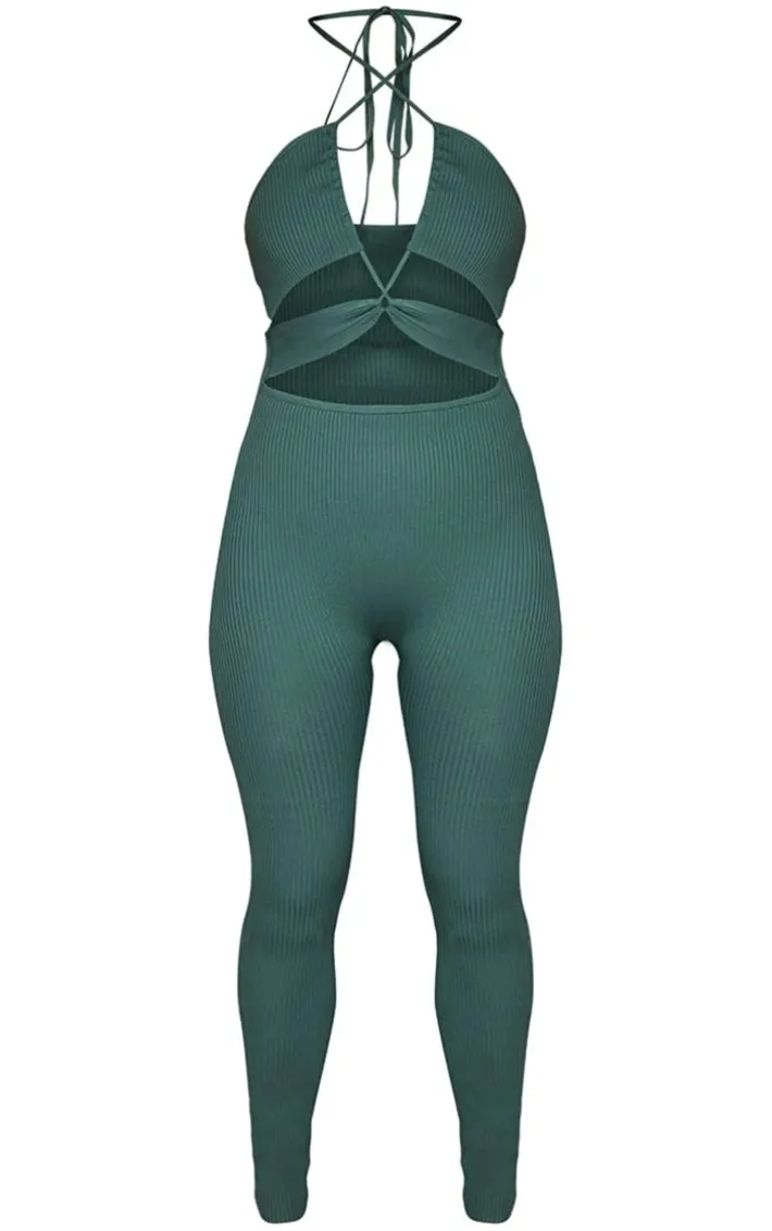 Make styling simple with this khaki cross front rib knit jumpsuit. Brought to you in a khaki hue rib knit material with a cross front design and a figure-flattering fit, how can you not fall in love? Style this jumpsuit effortlessly with heels for a look worthy of your weekend plans, or why not add fresh kicks to take your off-duty ‘fit to a whole new level.