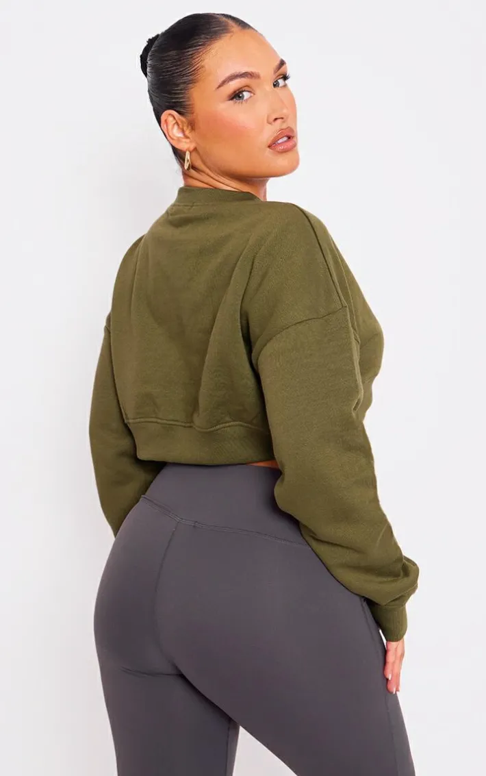 Give your new season wardrobe the chic upgrade it deserves with this khaki curve hem cropped Sweatshirt, it is perfect for those chilled off-duty days. Brought to you in a khaki hue material with a curved hem and a cropped length, this Sweatshirt is here to solve all your styling dilemmas. Team with some flared leggings, chunky sneakers and your fave accessories to elevate the look further.