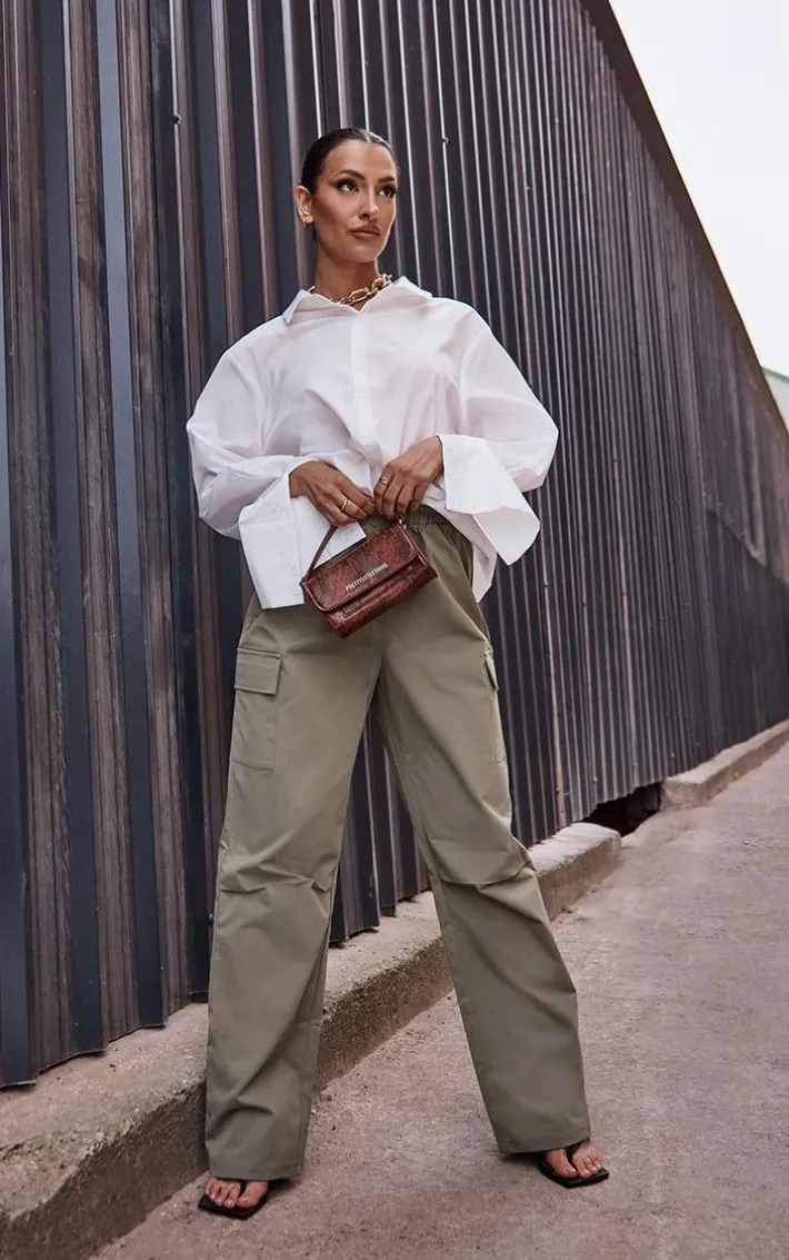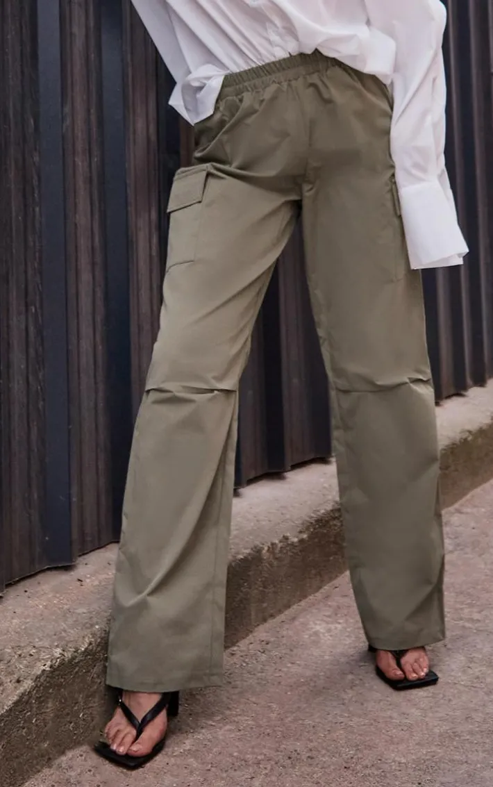 Add some of this season’s must-have hue to your off-duty wardrobe with these bottoms. Featuring a khaki material with an elasticated waistband and a straight leg fit. Team with a crop top and chunky kicks for a look we’re obsessing over.