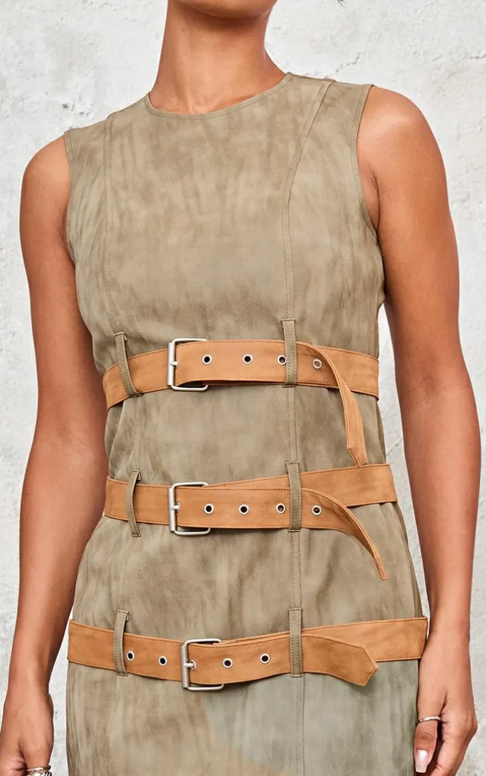 This khaki faux leather belted bodycon dress is calling your name. Brought to you in a must-have khaki shade, with a luxe finish faux leather material and belted detailing, you’ll be easily remembered as best dressed for any occasion. Style with some khaki knee length boots and silver accessories for a look we’re crushing on.