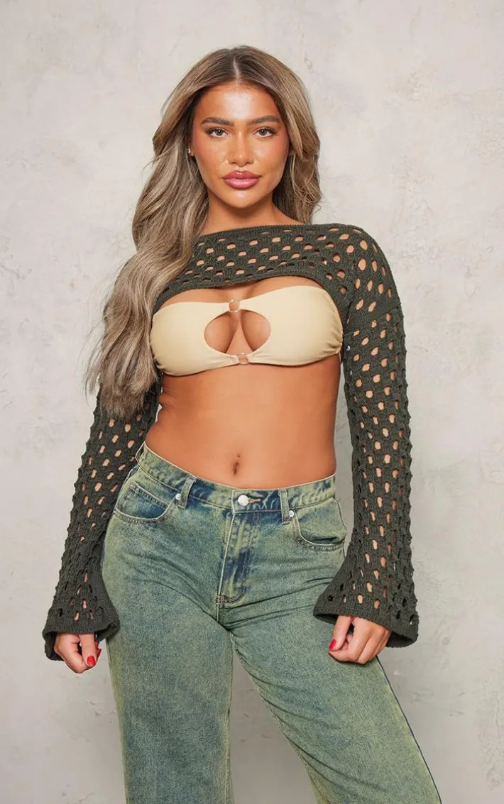Add some knit feels to your look of the day with this top. Featuring a khaki knit material with flared sleeves, we’re in love. Team with your existing wardrobe pieces to complete this must-have look.