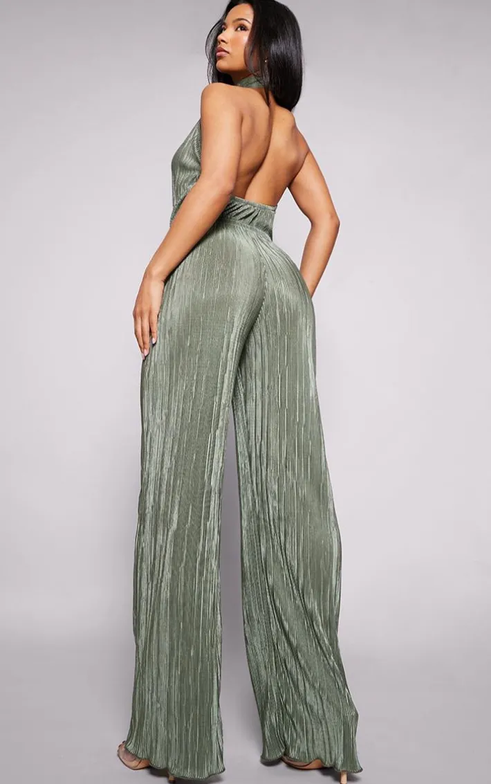 Be on trend this season with this khaki plisse high neck scoop back wide leg jumpsuit. This jumpsuit is brought to you in a khaki plisse material with a high neck, a scoop back and wide leg fit, what’s not to love? This jumpsuit is perfect for your next date night. Simply style with your dreamy high heels and accessories for a look that we can’t stop crushing on.