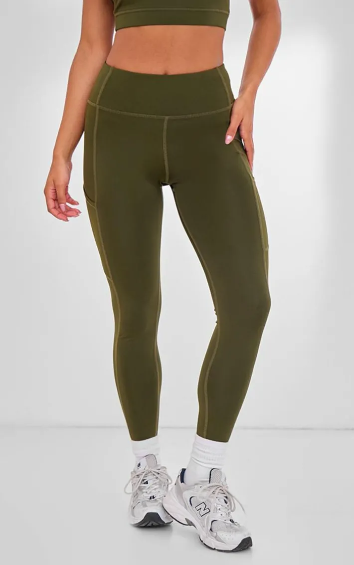 Give your workout wardrobe the upgrade it deserves with these khaki pocket detail seamless leggings. Brought to you in a khaki material with a figure-hugging seamless fit and pocket detailing, how can you resist? Team these seamless leggings with the matching sports bra, sneakers and an oversized Sweatshirt for a look that is perfect for those on-the-go days and beyond.