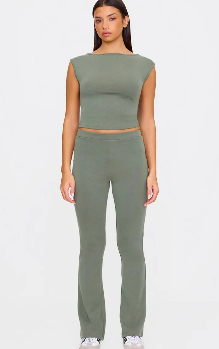 Introducing your new style go to with these khaki premium soft touch skinny flare pants. Brought to you in a khaki hue soft touch material with a skinny flare design, these pants are a must have. Style with the matching top, strappy heels and simple accessories for a look like no other.