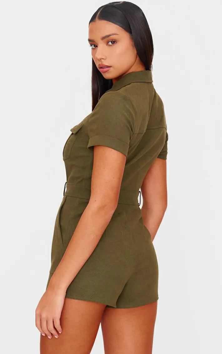 Keep any look chic with this khaki soft tailored utility detail romper. Brought to you in a khaki soft material with tailored design and a utility detail. you are sure to set trends. Team with a pair of heels and accessories to feel effortlessly glam all season long. It’s a yes from us.