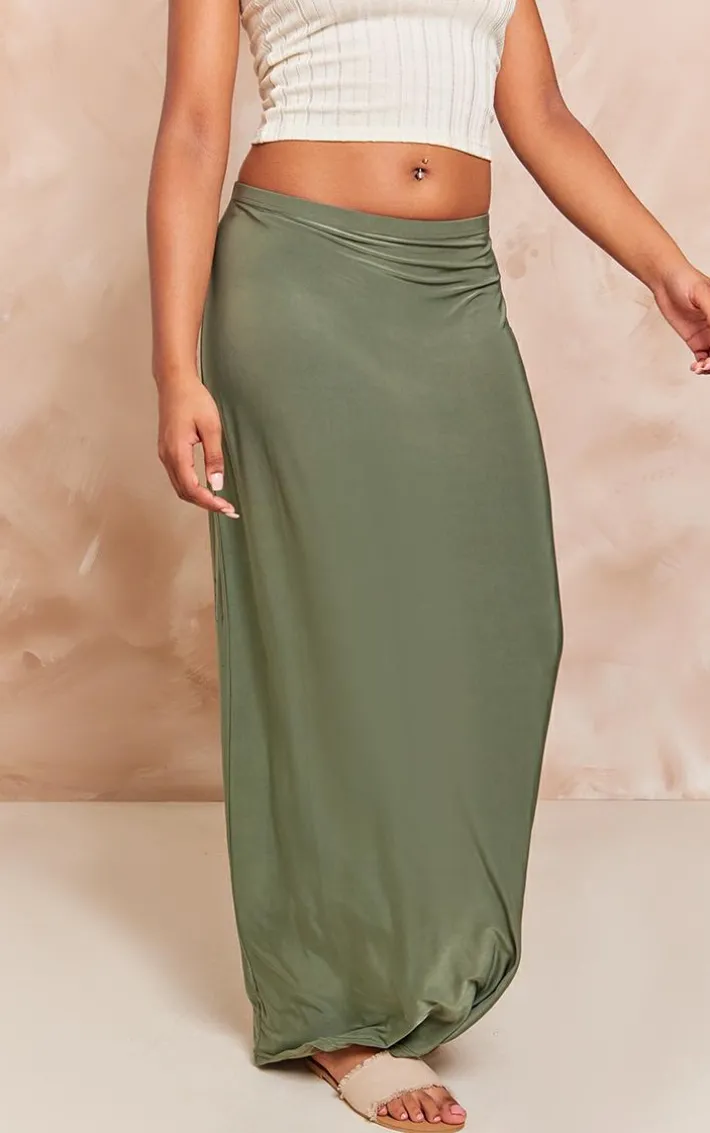 Get your glam on with this khaki soft touch low rise drapy maxi skirt. Made from a khaki soft touch material with a low rise fit, you’re sure to have all eyes on you. When the weekend calls so does this maxi skirt. With a drapy design, what more could you want? So what are you waiting for? Shop the look and opt for some slip on sandals and a bandeau top. It’s a yes from us.
