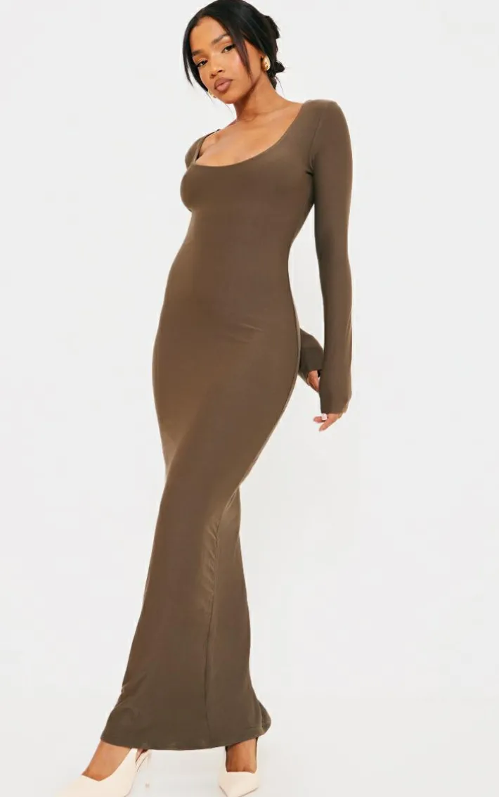 Take the stress out of everyday styling with this khaki soft touch scoop neck long sleeve midaxi dress. Brough to you in a khaki hue soft touch material with a scoop neck design, long sleeves and a midaxi fit, how can you resist? Perfect for dressing up or down to suit any occasion, this midaxi dress is sure to be a staple in your new season wardrobe. Just add sneakers and your go-to accessories for a fool-proof finish.