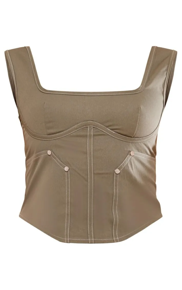 Your weekend wardrobe isn’t complete without this khaki twill contrast seam structured cargo corset. This versatile corset top is perfect for catching up with the dolls, or it is easily dressed up for your next upcoming event. It features a khaki twill material with a contrast seam and a structured cargo design. Simply style with matching pants and some gold hoops. This corset is sure to steal all the attention doll, we are obsessed with.