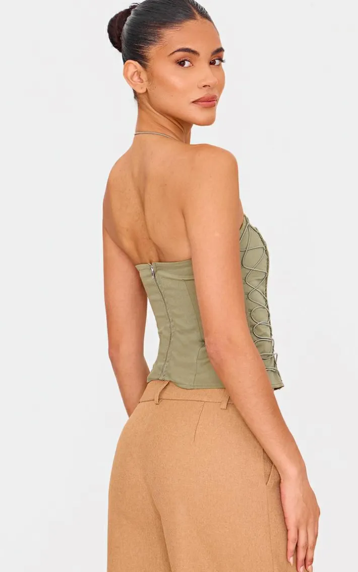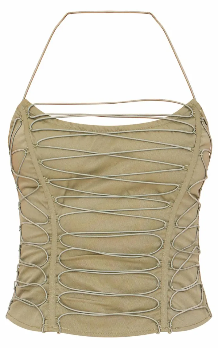 Get working your best angles this season with this khaki woven elastic lace up corset. Made using a khaki hue woven material with a lace-up detailing and a flattering fit, what more could you ask for? This women’s top is sure to capture you in your best light. Simply pair with some wide leg pants, high heels, accessories and a shoulder bag for some easy weekend styling that can’t be matched, it won’t disappoint.