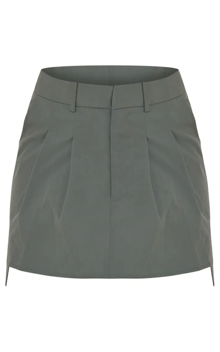 Give your weekend wardrobe the ultimate chic upgrade with this khaki woven utility pleated detail tailored skater skirt, it’s giving all the fierce vibes. This skirt features a khaki hue woven material with pleat detailing and a tailored fit. The skater design is sure to help show off your confident side, we’re obsessed. Wear with the matching top, slip-on heels and your fave accessories for a look that is perfect for a night.