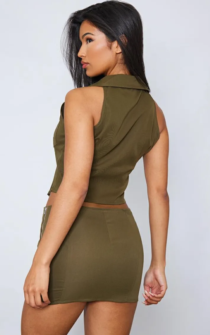 Get ready to earn all the style points in this unreal khaki woven zip up cargo mini skirt, it is a must-have to take your day to night look to the next level. It is made with a khaki woven material with a zip-up design and a mini length, how could you not be in love? Team with the matching top, statement hue heels and a mini bag for the perfect weekend-ready fit everyone will be obsessing over.