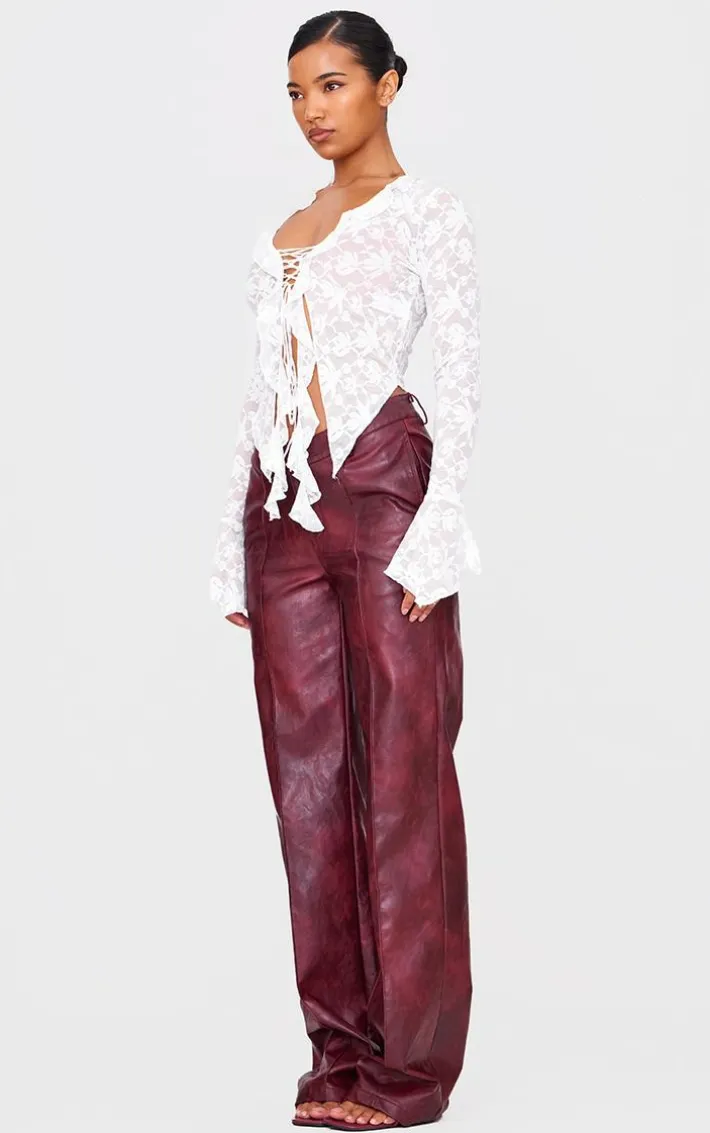 Instantly elevate your outfit of the day with this white lace tie front ruffle blouse. Brought to you in a white hue lace material with a tie front design and ruffle detailing, how can you resist? Style this white blouse with faux leather bottoms and heels for an effortlessly chic look worthy of your weekend plans.