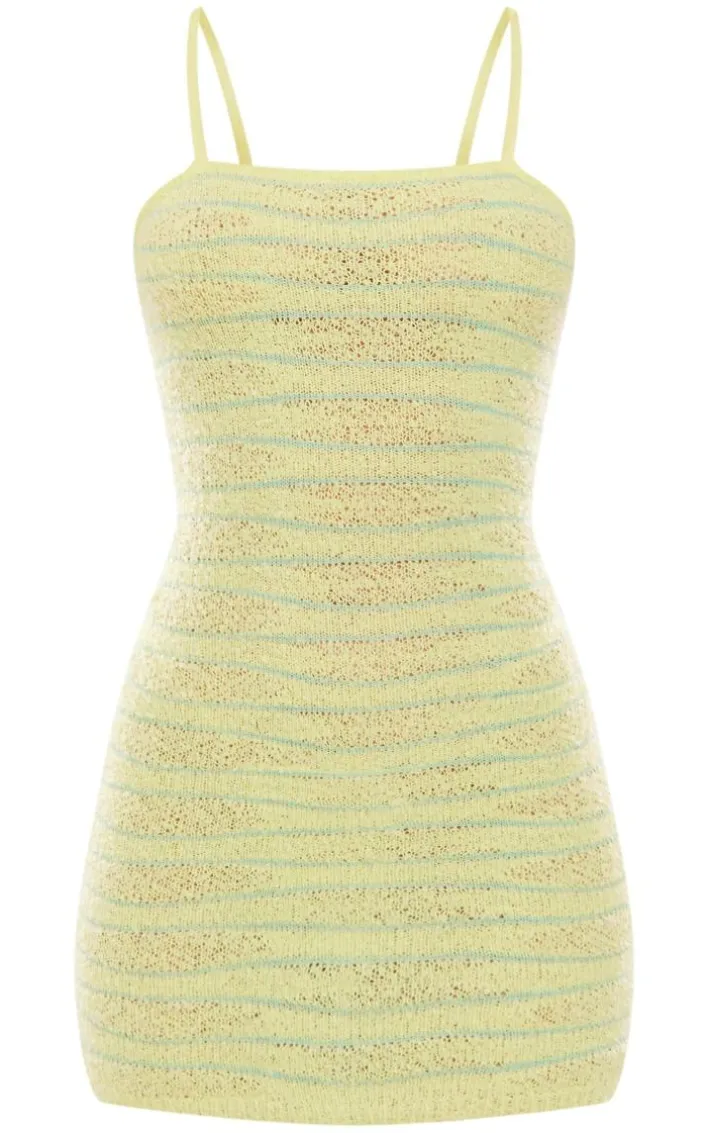 Brighten up your new season wardrobe with this lemon boucle knit striped dress. Perfect for dressing up or down to suit your weekend plans, we are obsessed. Brought to you in a dreamy lemon hue boucle knit material with a striped design and a figure-hugging mini fit, you really can’t go wrong. Keep it casual and team this dress with fresh kicks and your go-to accessories for a fierce off-duty ‘fit that won’t go unnoticed.
