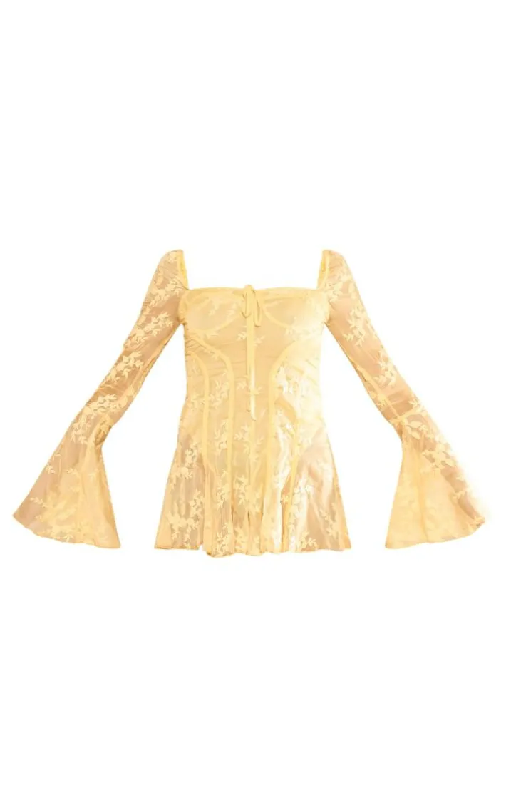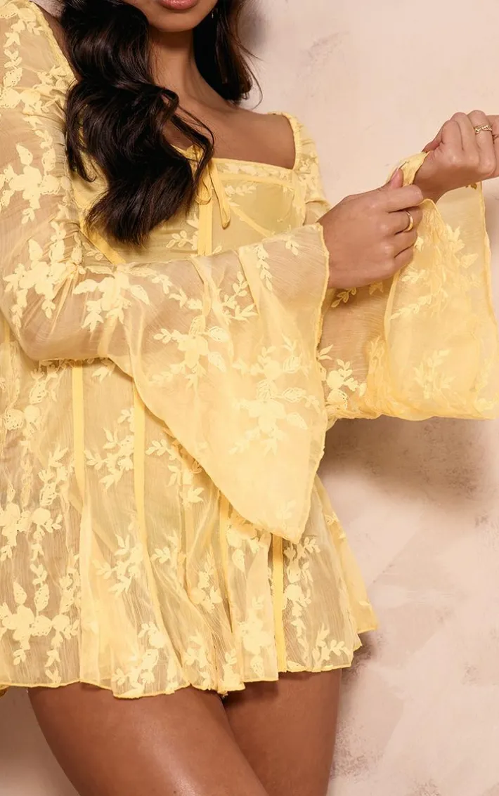 Make heads turn for all the right reasons in this luxe lemon lace binding detail flare sleeve romper. Brought to you in a dreamy lemon hue material with lace detailing and long flared sleeves, how can you not fall in love? In a figure-worshipping fit, this lemon romper is guaranteed to earn you some serious style points. Just add matching hue heels and statement accessories to elevate the look.