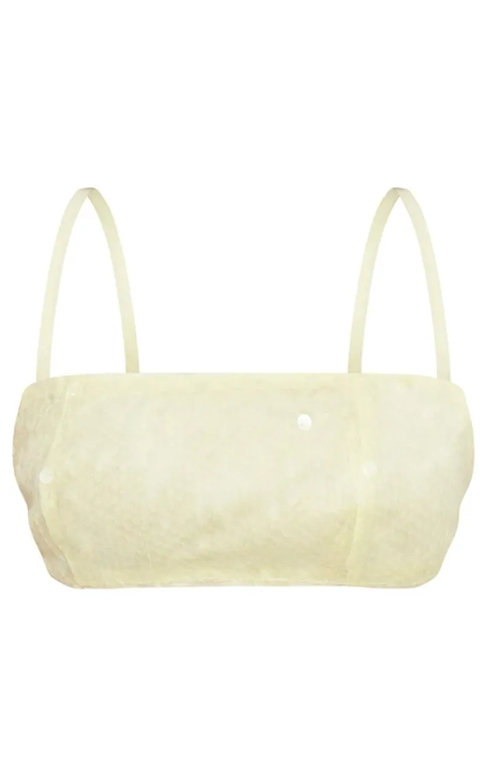 When your weekend look is in need of a subtle touch of luxe, we’ve got you covered with this lemon lace up sequin bandeau top. Brought to you in a dreamy lemon hue material with a lace up design, a bandeau neckline and sequin detailing, you really can’t go wrong. Pair this bandeau top effortlessly with the matching skirt, heels and gold accessories for a look that will make you stand out from the rest.