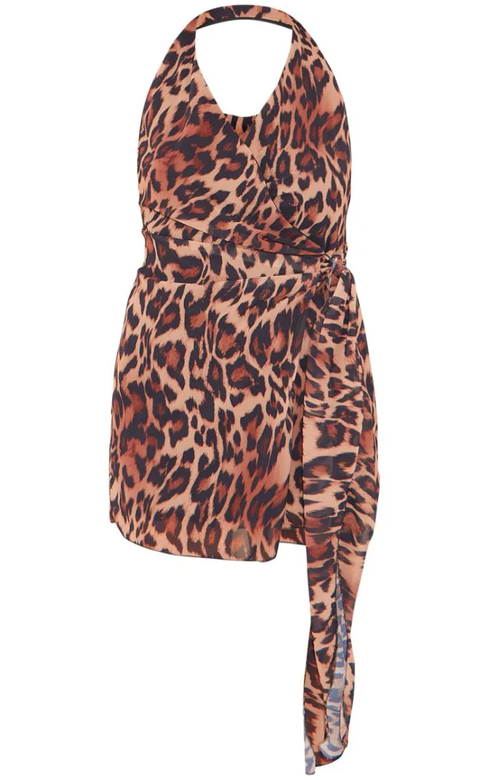 Go for all the fierce vibes this weekend with this leopard mesh wrap halterneck mini dress, we just can’t get enough. This dress features a leopard print mesh material with a halterneck style and a wrap over design. Pair this mini dress with slip-on heels and a shoulder bag to have all eyes on you.