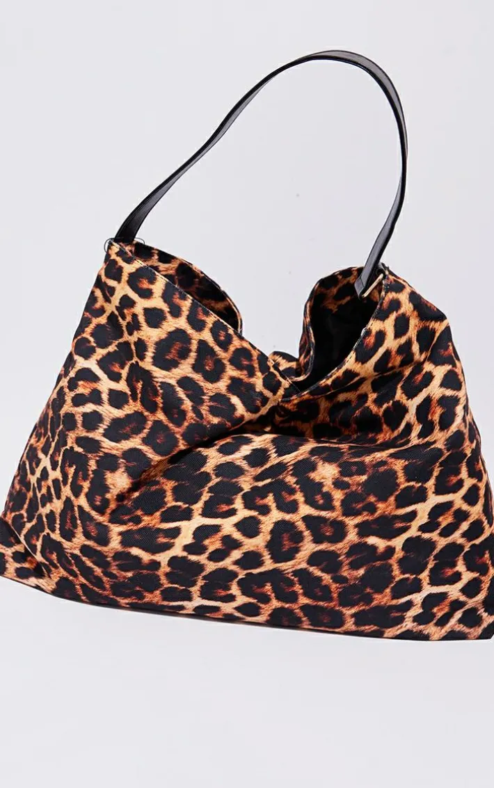 Nail major trends with this leopard print slouchy tote bag. This tote bag is brought to you in a leopard print material with a slouchy style and zip-fastening, this bag is calling your name. Style this with your outfit of the day for the ultimate combo.