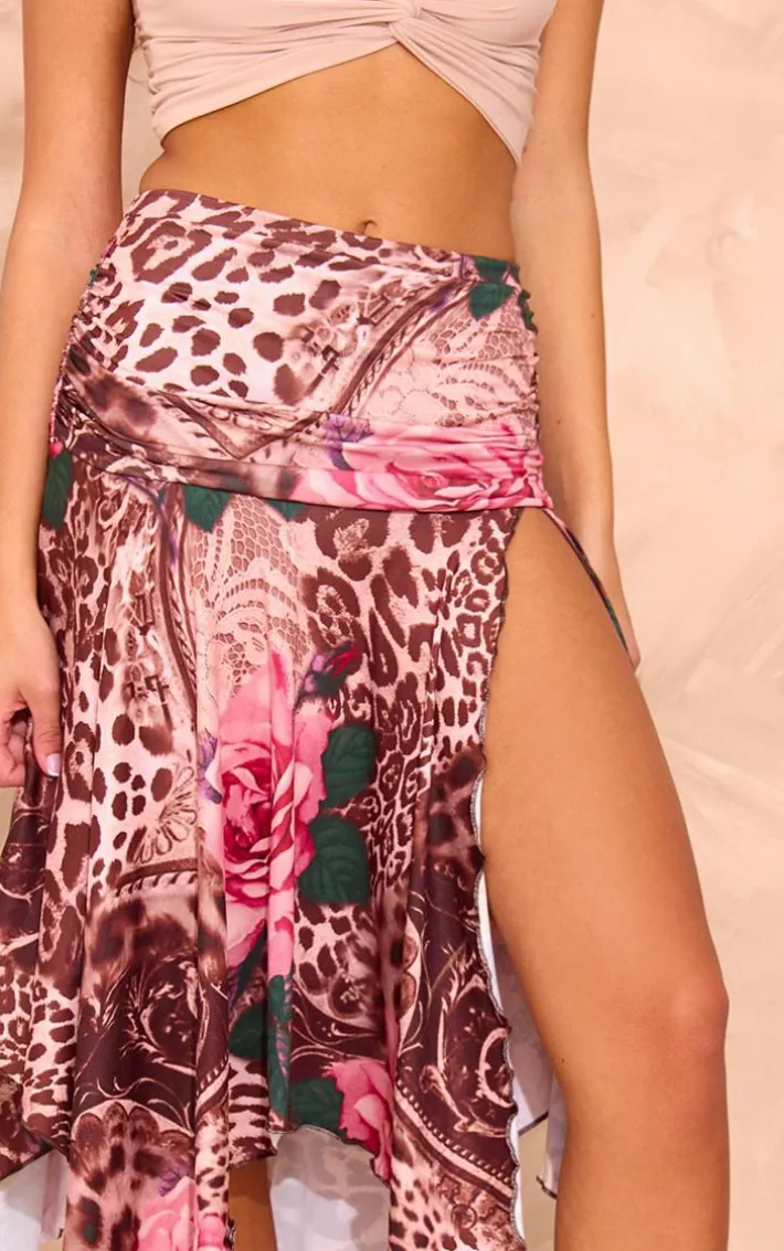 Nail new season trends in this leopard rose print soft touch ruched asymmetric midi skirt. Brought to you in a leopard rose print soft touch material with an asymmetric hem and ruched detailing, how can you not be obsessed? Style this midi skirt with a crop top, heels and gold accessories for a look that is sure to steal all the stares.