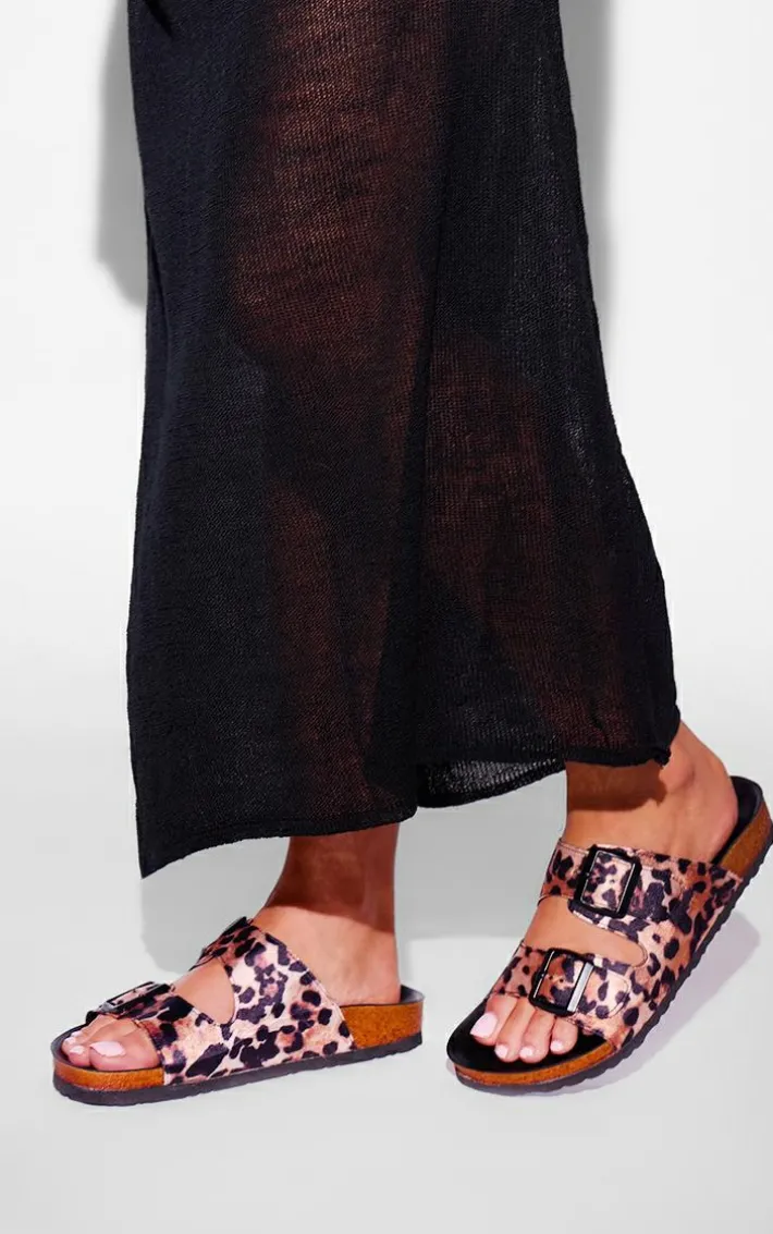 Make sure your new season look stays on trend in these leopard satin round toe double buckle flat sandals. Brought to you in a leopard print satin material with a round toe design and double buckle strap detailing, how can you resist? Simple add these flat sandals to your outfit of the day for the perfect finishing touch.