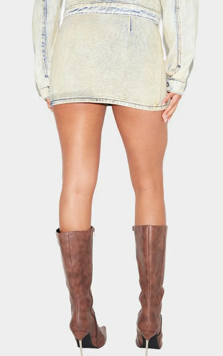 Step out in style with this light blue acid wash detail denim mini skirt. Brought to you in a light blue acid wash denim material with a seam detail and a mini length, you are sure to turn heads in this skirt. Team with the matching top and your fave heeled boots to finish off the look we are loving.
