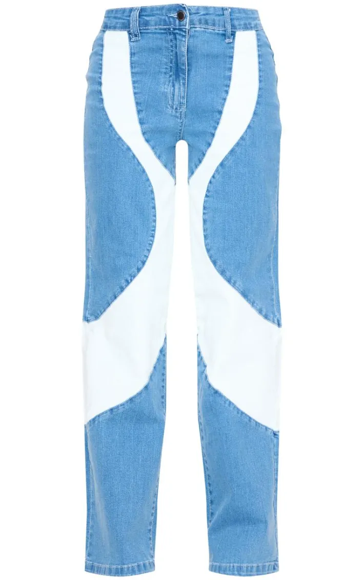 Keep your style game strong with these light blue contrast panel detail straight leg jeans. Brought to you in a light blue material with a contrast panel detail, you wont blend in. With a straight leg fit, these jeans are sure to be your new go-to. Pair with your fave tee, a pair of sneakers and accessories for a combo that can be dressed up or down.