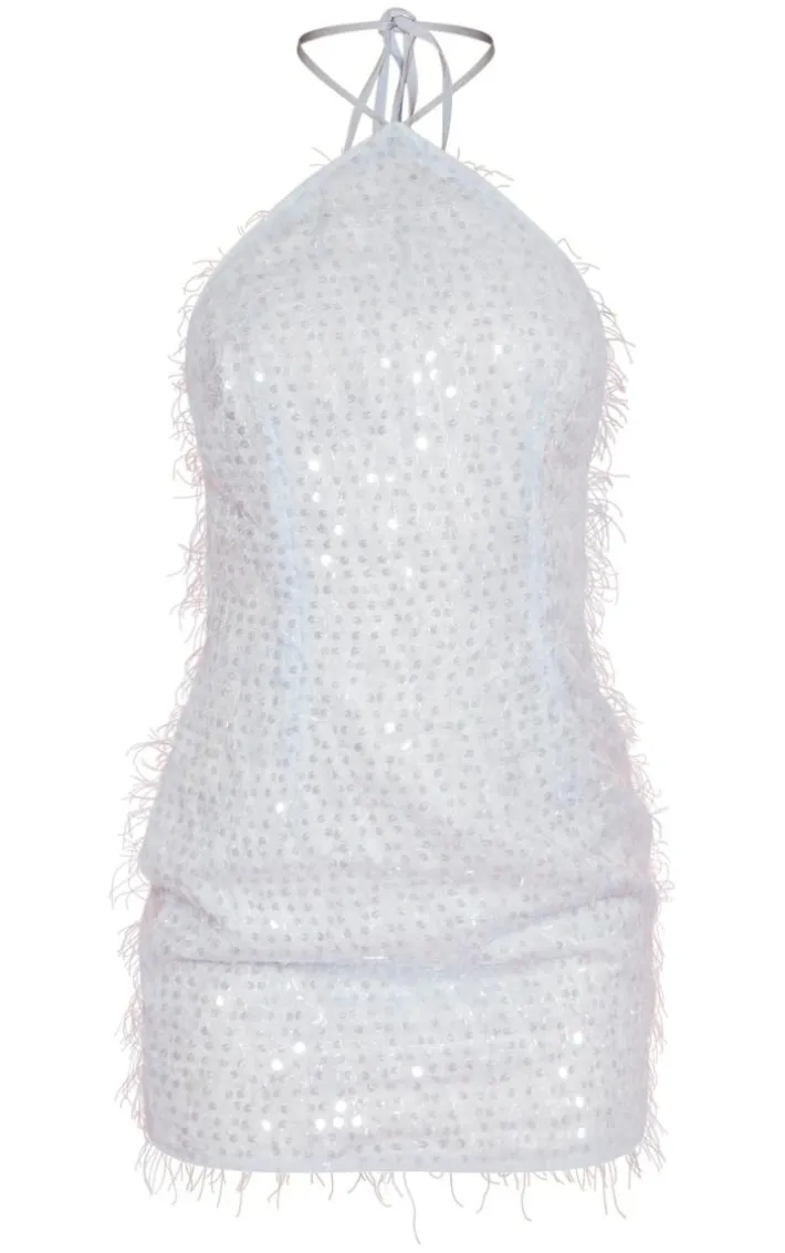 You are guaranteed to make heads turn in this light blue eyelash glitter knit look sequin detail halterneck shift dress. Brought to you in a light blue eyelash glitter knit look material with a halterneck design and sequin detailing for that extra touch of luxe, how can you not fall in love? Style this shift dress with heels and statement accessories for an occasion look to be remembered.