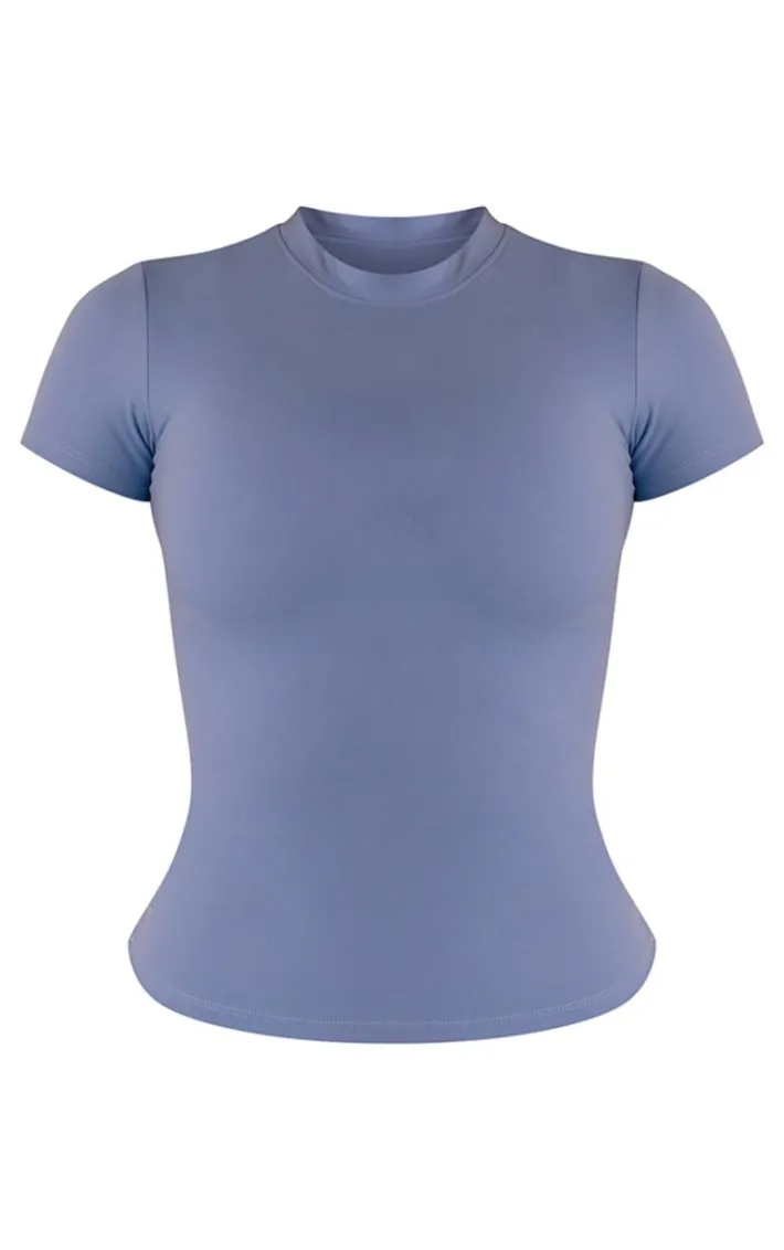 Add some pastel tones into your off-duty wardrobe with this light blue snatched sculpt short sleeve t shirt. This t shirt is brought to you in a light blue material with short sleeves and a contouring fit, what’s not to love? This t shirt is everything and more we’re loving paired with the matching hot Pants, box-fresh kicks and accessories for an off-duty vibe like no other.
