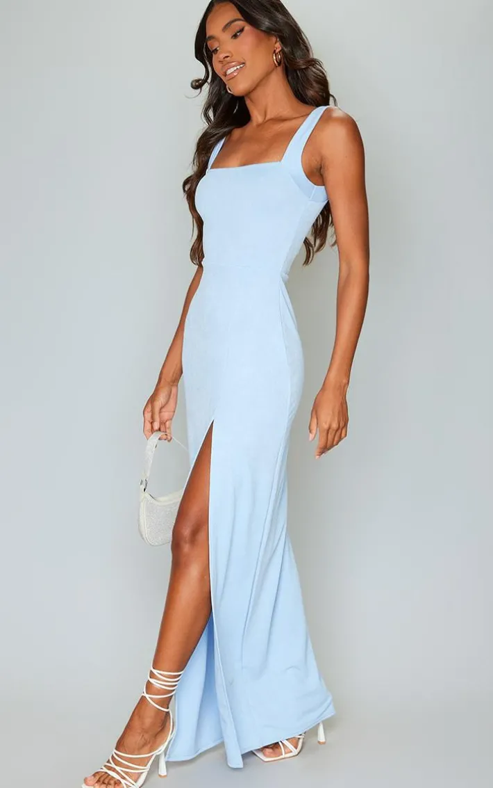 When you don’t know what to wear this light blue straight neck maxi dress is the answer. Brought to you in a light blue material, what more could you ask for? This dress has a straight neck design and a maxi length, it’s a yes from us. This dress has endless styling potential and is an essential that is currently missing from your wardrobe. Just add your highest heels and gold hoop earrings for an everyday vibe that everyone will love.