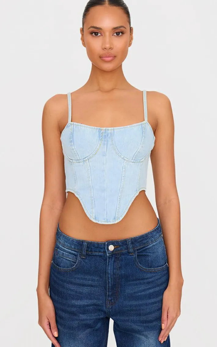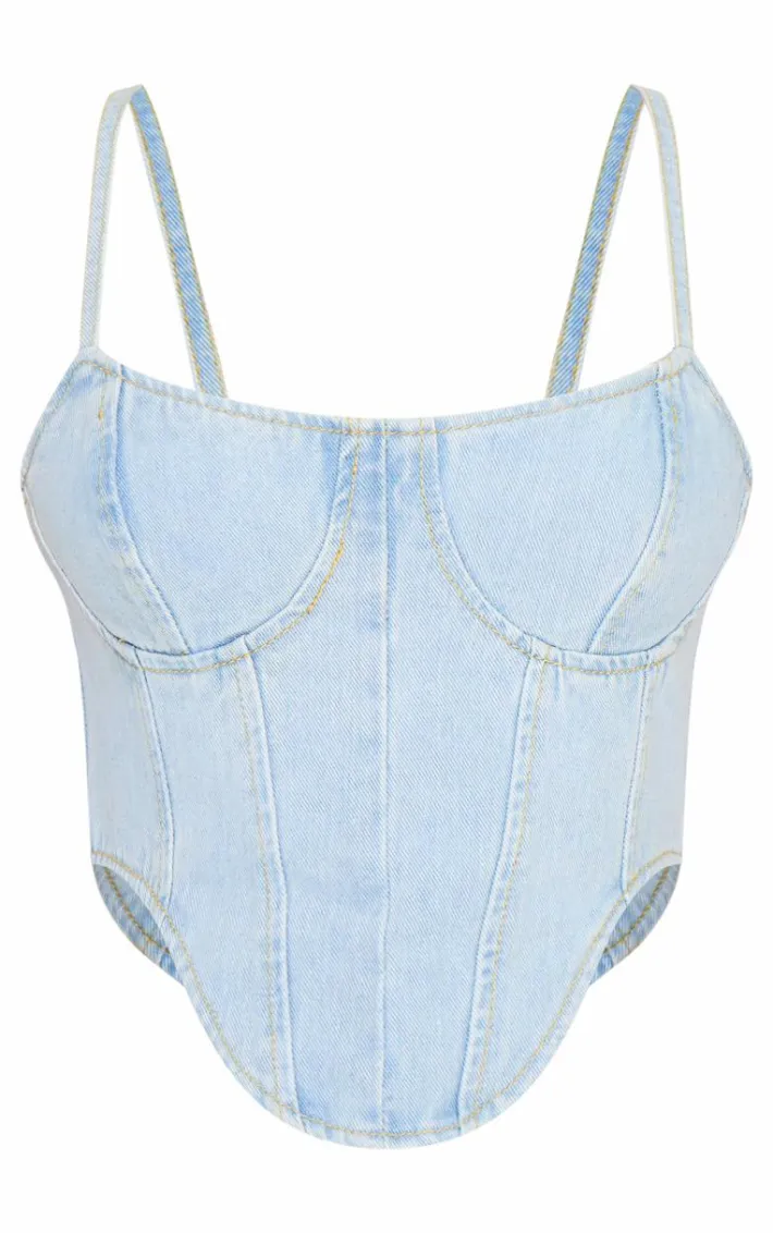 Channel the double denim look everyone is talking about with the help of this light blue wash dipped hem denim corset. Brought to you in a light blue wash denim material with a dipped hem design and a figure-worshipping corset fit, what more could you need? Style this denim corset with a pair of jeans and statement gold accessories for a look that will have eyes on you wherever you go.