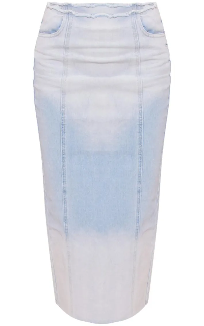 Level up your denim wardrobe with this light blue wash raw edge side split denim maxi skirt. This maxi skirt is brought to you in light blue denim wash material with a raw edge and a side split design, what more could you want? From AM to PM this maxi skirt will have you looking totally on-trend this season. To secure the look pair this with a crop top, box-fresh kicks and accessories. It’s a yes from us.