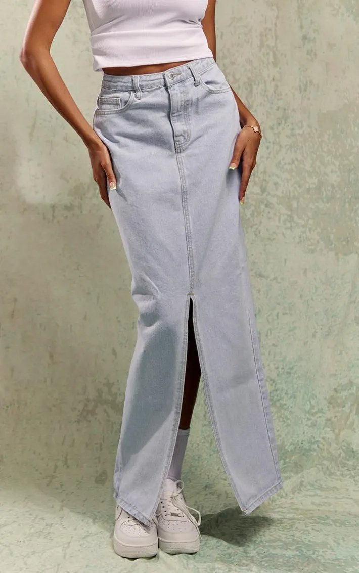 We’re obsessed with this light blue wash statement slit denim maxi skirt for your new season wardrobe doll. Whether you have brunch plans with the dolls or want to freshen up your off-duty wardrobe, this maxi skirt is just what you need. With a light blue wash denim material, a slit hem and a statement maxi length, how could you not be in love? Team this maxi skirt with a basic white top, chunky sneakers and a shoulder bag for a flawless finish.