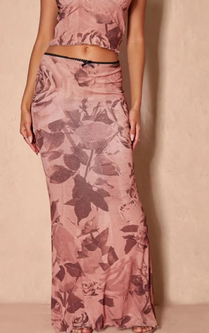 Got a special occasion coming up ? Then this light brown floral print onion skin lettuce hem low rise maxi skirt is sure to solve all your styling dilemmas. It features a light brown onion skin material with a floral print and a low rise design, you’re sure to be showing off your confident side in this maxi skirt. Style this floral print skirt with the matching top, heels and your go to accessories for a look everyone will love.