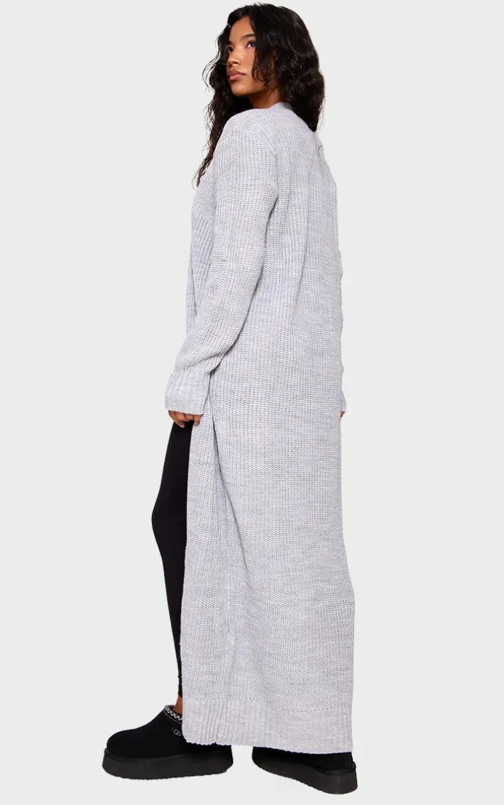 Keep your look cosy with this must-have cardigan. Featuring a super soft light grey knitted material and a flattering maxi length, what is not to love? Team with blue jeans, chunky boots and a bodysuit for a look everyone’s obsessing over.