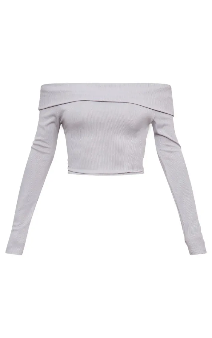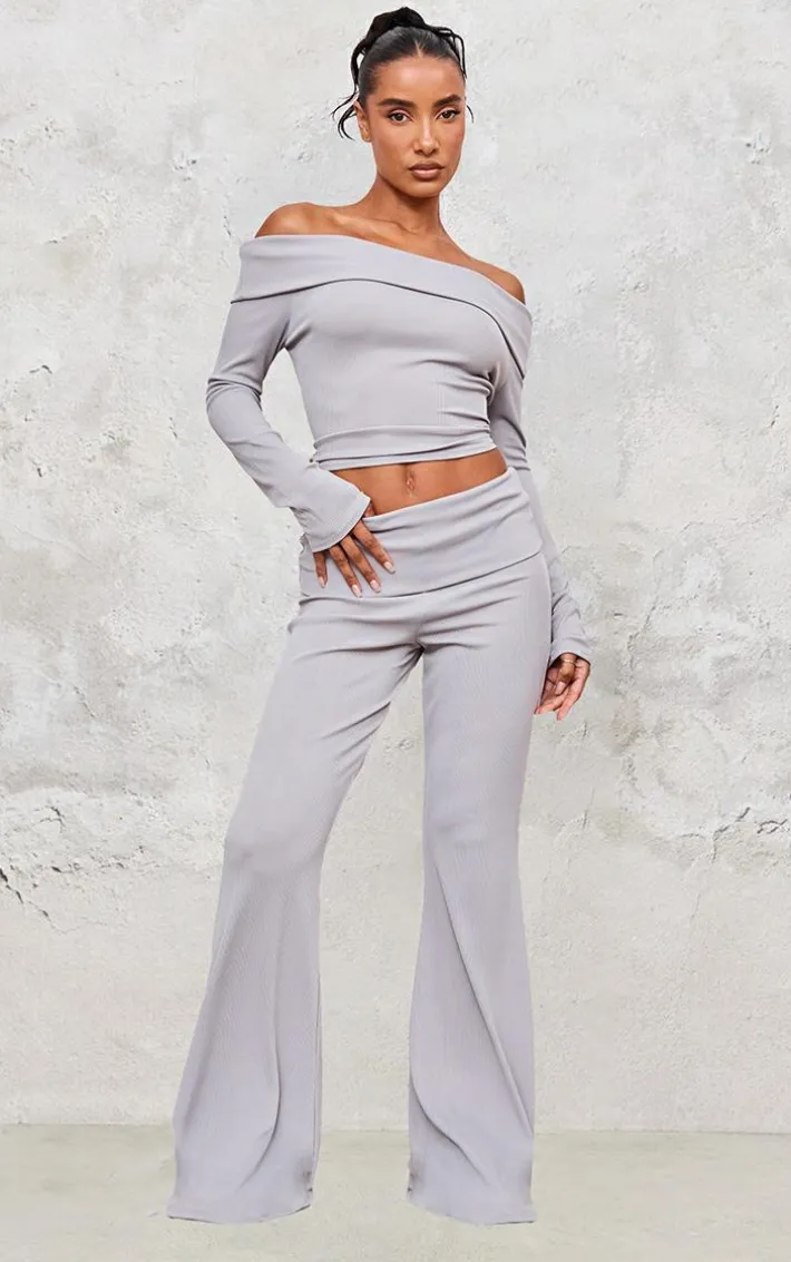 You need this light grey rib foldover bardot flute sleeve longline top in your off-duty collection. Brought to you in a light grey rib material with a foldover bardot design and a flute sleeve fit, what more could you want? This longline top is an essential in your wardrobe. Team with the matching pants and a pair of heels to elevate the look even further.