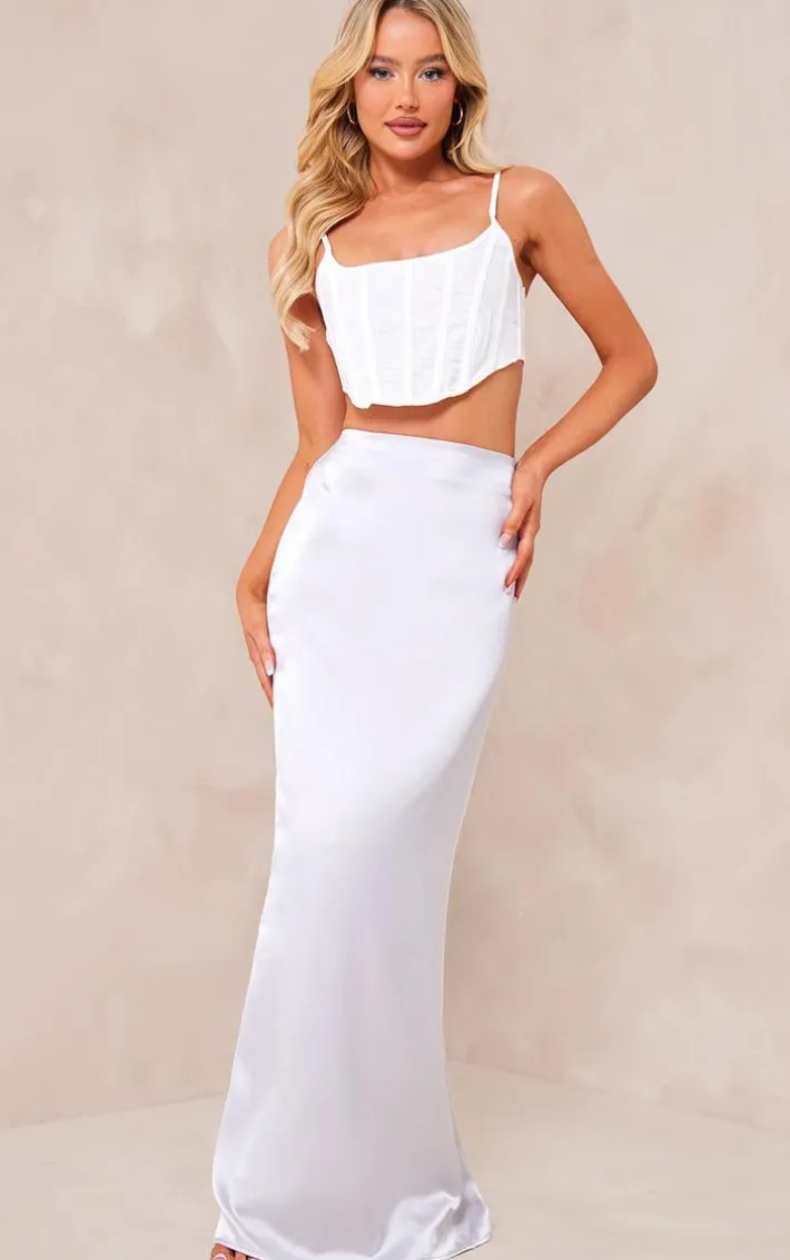 When the dress code calls for glam, we’ve got you covered with this light grey satin low rise maxi skirt. Brought to you in a light grey hue satin material with a low rise design and a flattering maxi fit, how can you resist? Style this maxi skirt with a crop top, heels and some luxe accessories for a look that is sure to steal all the stares.